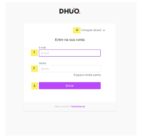 Acesse a área logada do DHuO. Caso não possua uma sessão ativa, direcionaremos para a tela de login.